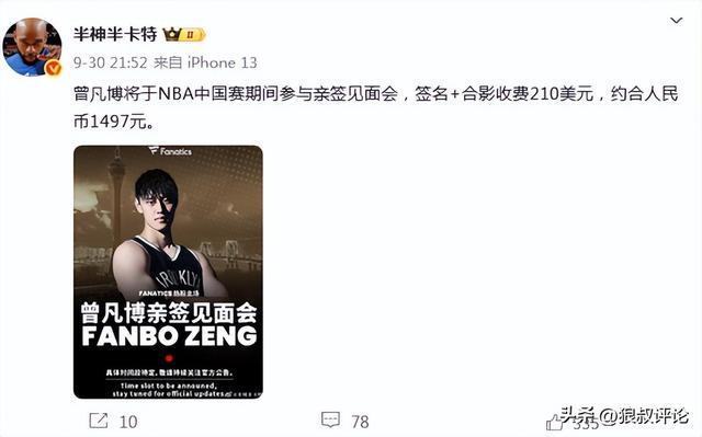 值得一提的是此前篮网在澳门中国赛举行的球迷见面会,曾凡博的合照+签名接近1500元的价格引发球迷吐槽,认为吃相太难看了,结合到在非澳门赛事的比赛,曾凡博并没有获得太多的机会,或许更加进一步引起外界吐槽,曾凡博只是为澳门赛准备,想要冲击正规合同的难度巨大。