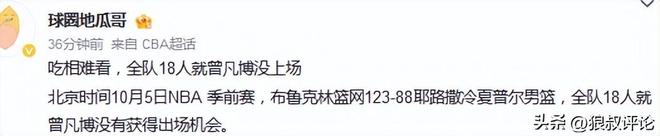 有球迷吐槽说道:吃相难看,全队18人就曾凡博没上场。