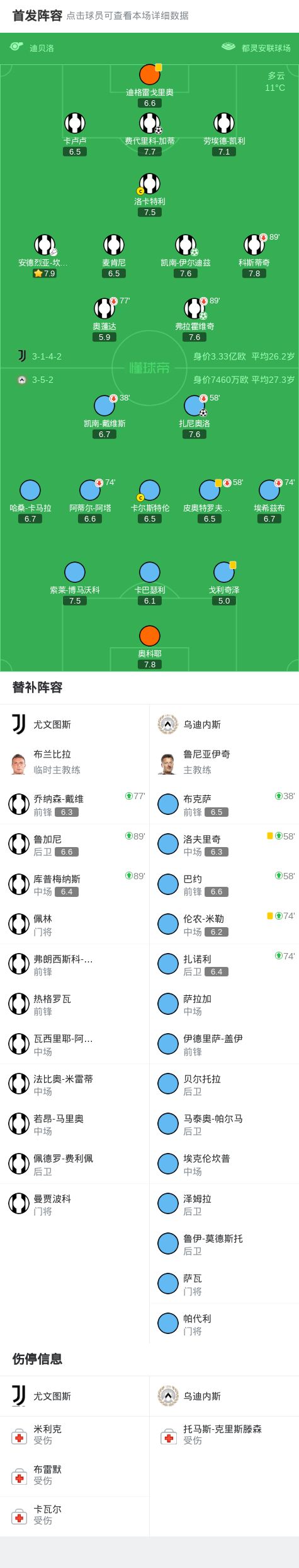 第45+2分钟,扎尼奥洛禁区内调整后破门,乌迪内斯1-1尤文